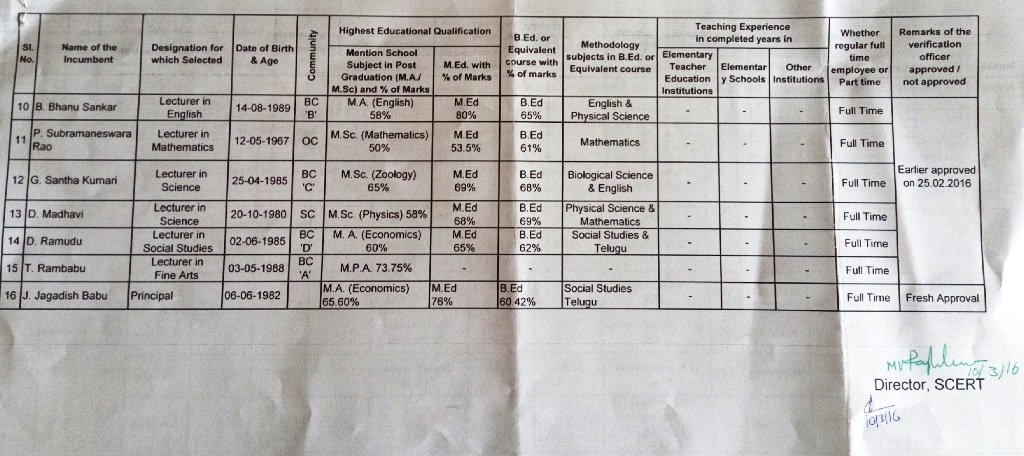 Staff Particulars